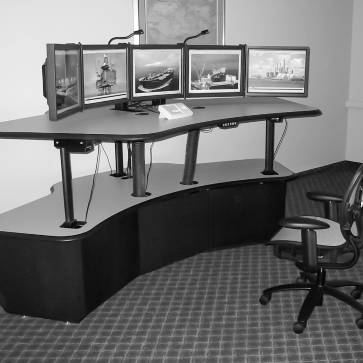 In the 1990s, the introduction of sit-stand functionality revolutionized control room console design. Electronically controlled actuators enabled precise parallel leg movements, allowing operators to adjust the height of their work surfaces.